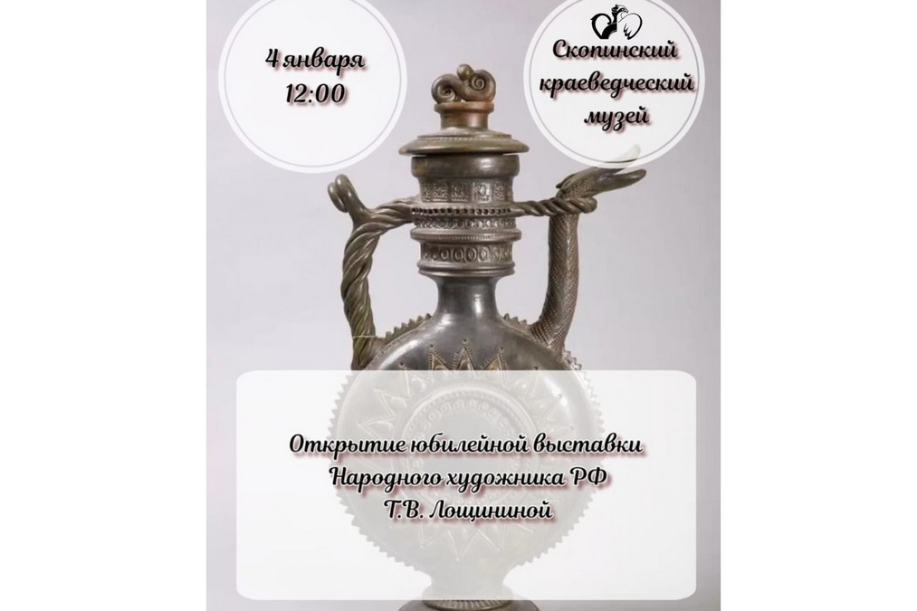 4 января в 12.00 в Скопинском краеведческом музее откроют юбилейную выставку народного художника России, лауреата Государственной премии СССР Татьяны Лощининой. Имя этого мастера хорошо знакомо жителям Рязанской области и керамистам и гончарам далеко за ее пределами. Работы Татьяны Васильевны узнаваемы, хотя этот художник постоянно пробует новые формы, глазури, варианты обжига. В дни каникул музей будет работать 4, 5, 6 и 8 января с 10.00 до 16.00. Выставку можно будет посмотреть до 18 января. Возраст для посетителей 0+.