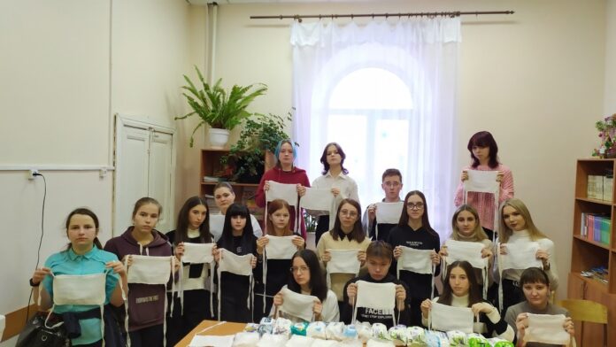 Большинство школ Скопина присоединились к акции «Пока есть силы, надо помогать». Школьники под руководством педагогов плетут маскировочные сети, шьют ватно-марлевые повязки. Этим они занимаются на уроках труда, на внеурочных занятиях, в свободное время.