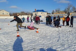 Команды Скопинского электротехнического колледжа и Скопинского филиала Рязанского медколледжа соревновались в зимних конкурсах. Ребята покатались на «ватрушках», поиграли в хоккей с мячом, померились силой в перетягивании каната.