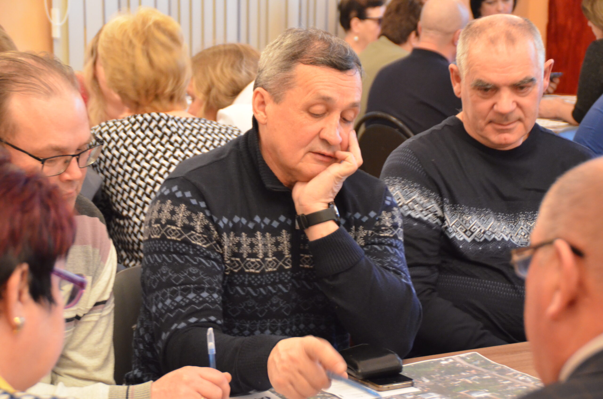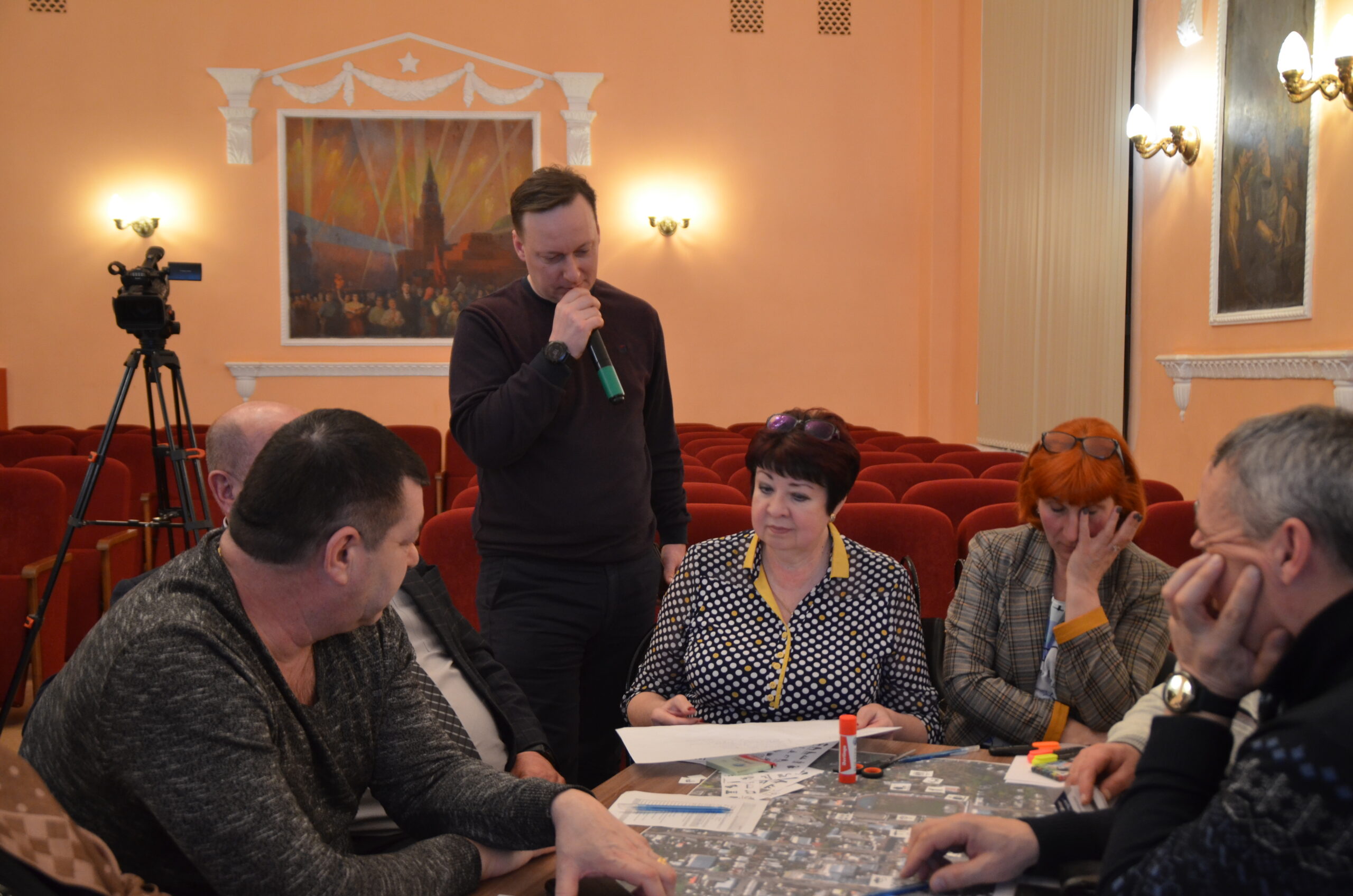 Встреча прошла в формате деловой игры. Сидящие за каждым столом представляли группу людей, которые будут пользоваться обновленным общественным пространством – предпринимателей, служащих, туристов, мам с детьми, пенсионеров, творческих людей и молодежи. Участники игры заполнили индивидуальные анкеты. Затем представители каждой рабочей группа перечислили существующие проблемы, описали возможные сценарии развития для своей целевой аудитории, отметили желаемые функции территории значками, ранее размещенными на карте. Во время обсуждения наметили основные цели и задачи проекта.