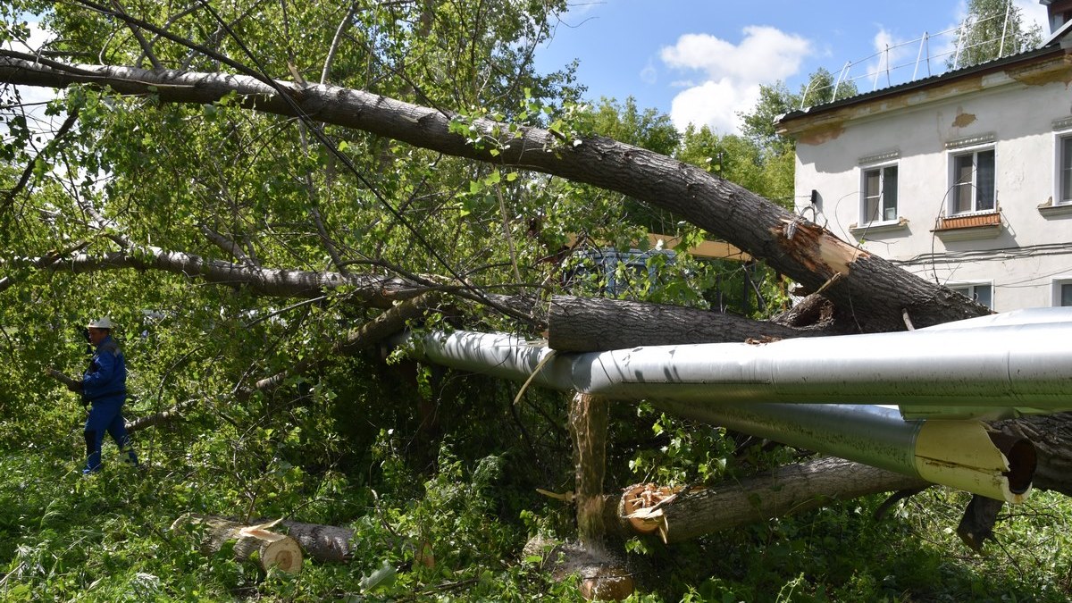 В Скопине ливня и града не было, но из-за сильного ветра упало дерево на улице Фабричной и повредило теплотрассу. На улице Данковской тоже упало дерево. Его ветки оборвали провода связи и перегородили проезжую часть.