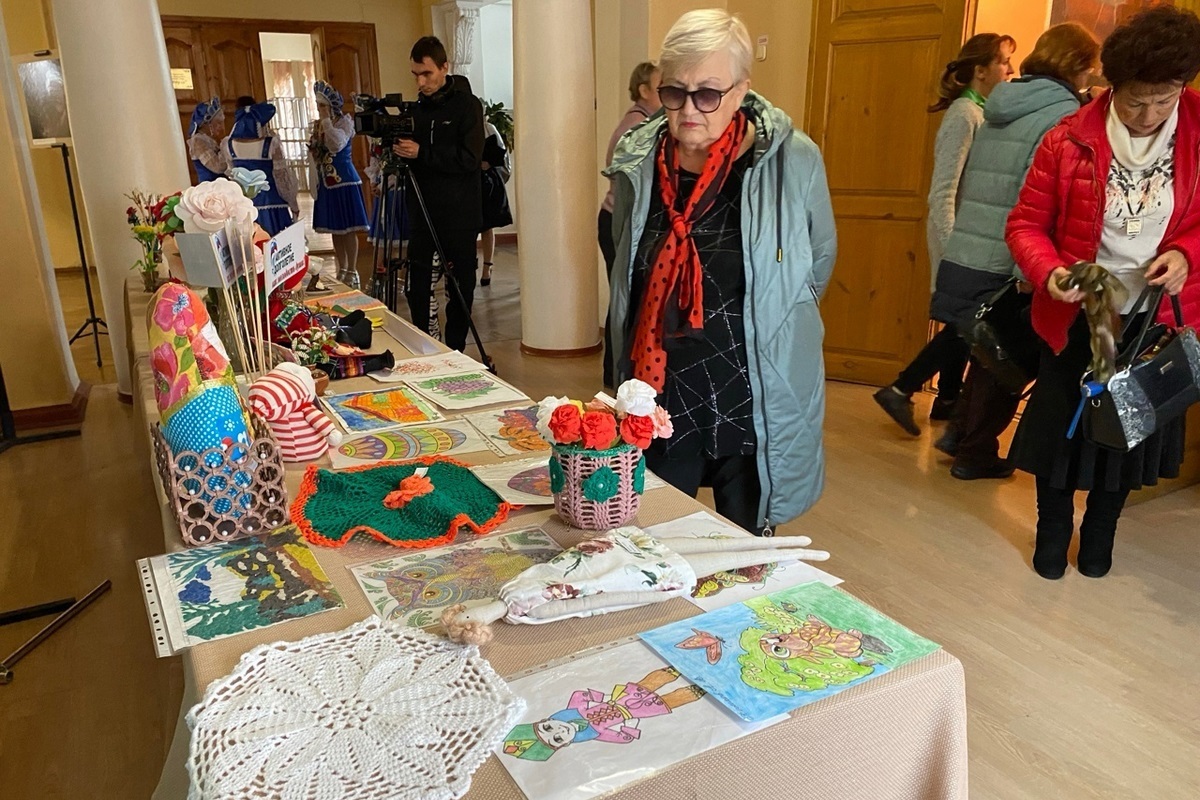 В фойе ДК для гостей сотрудники Скопинского комплексного центра социального обслуживания населения организовали для гостей выставку творческих работ, выполненных руками подопечных центра.