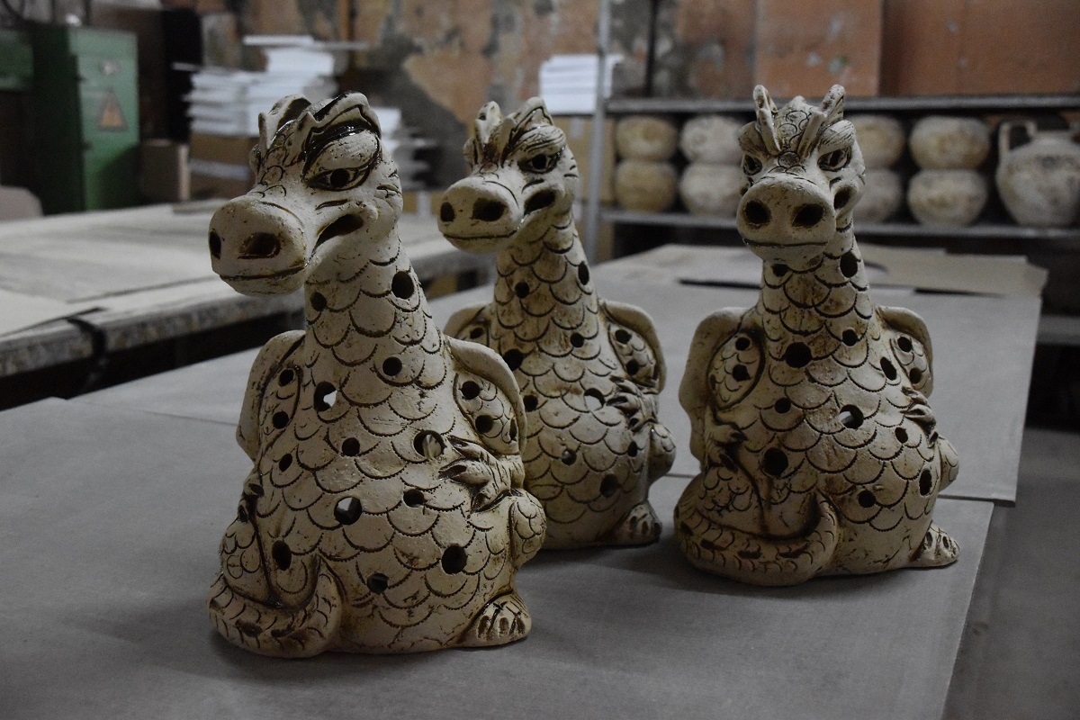 На Скопинской фабрике художественной керамики готовы к встрече Нового года. Главный художник предприятия Наталья Годовикова рассказала и показала, каких драконов сделали ее коллеги.