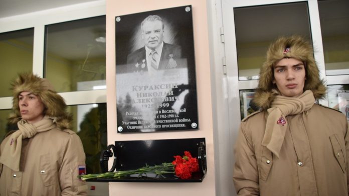 25 января в селе Вослебово Скопинского района торжественно открыли Памятную доску участнику Великой Отечественной войны и боевых действий против милитаристской Японии Николаю Кураксину. Ее разместили на здании школы – преемницы прежней, которую Николай Алексеевич возглавлял почти четверть века. В церемонии участвовали заместитель главы администрации по социальной политике Скопинского района Александр Соловьев, глава Вослебовского сельского поселения Александр Чевагин, настоятель Георгиевского храма города Скопина иерей Георгий Сторчак, учащиеся, педагоги и ветераны педагогического труда Вослебовской школы и местные жители.