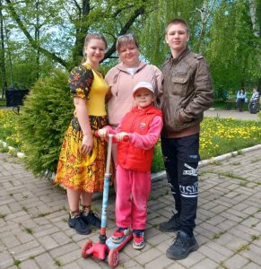Скопинка Юлия Тишкина пришла на праздник с тремя детьми: Катей, Вовой и Настей.