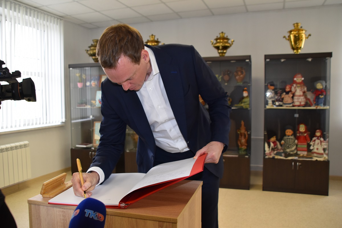 «Пусть здесь растут настоящие патриоты, светлые и талантливые люди!», – написал губернатор Павел Малков в Книге памяти школы в селе Успенское Скопинского района. Школу, а также детский сад в селе Успенском губернатор посетил во время рабочего визита в Скопинский район.