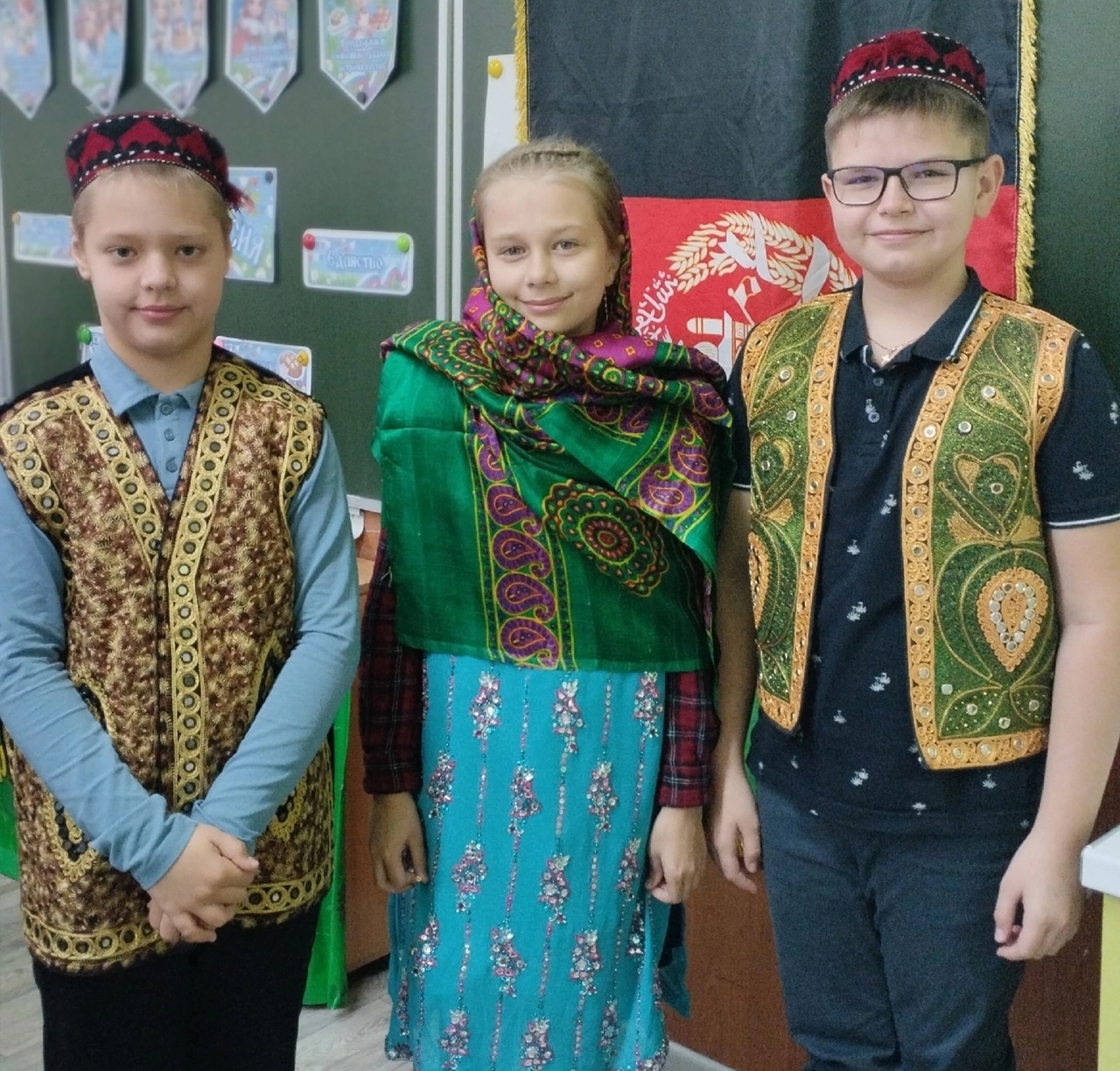 Также в рамках встречи прошел урок дружбы «Мы разные, но мы едины» в 3Г классе. На уроке дети познакомились с историей Афганистана, традициями, обычаями, культурой, национальной кухней этой страны. Каждый ребенок смог примерить национальные костюмы и головные уборы, а также попробовать национальные сладости Афганистана.