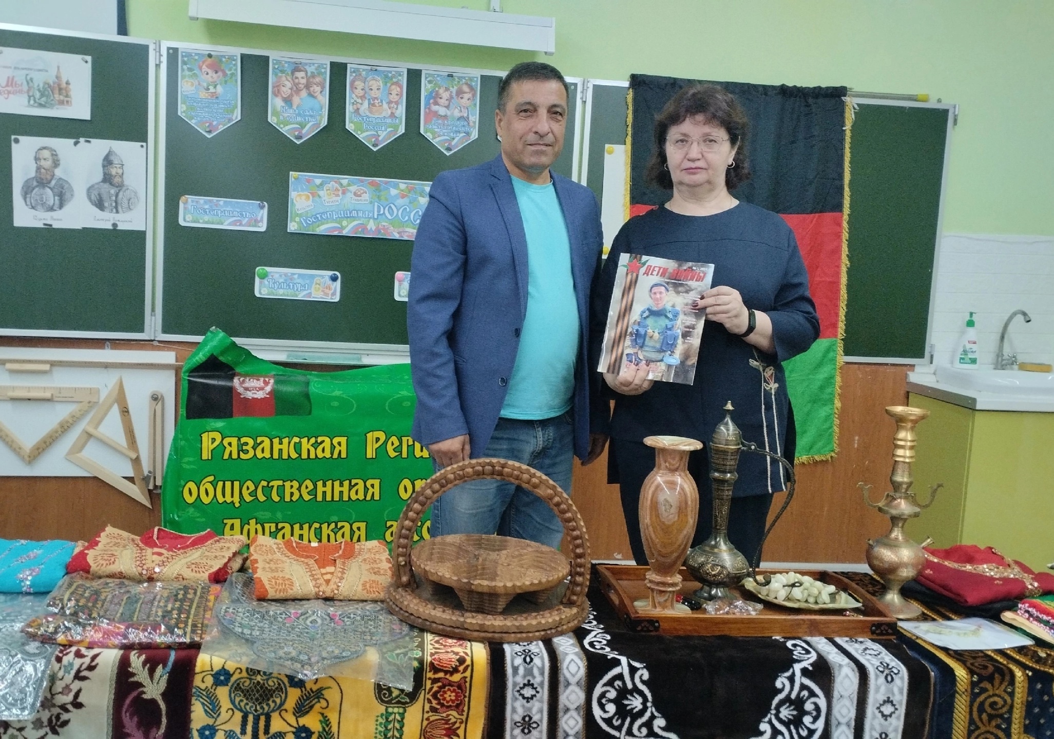 Руководитель РРОО «Афганская ассоциация «Бахтар» и представитель Межнациональной ассоциации Накибулла мир Сахеб Насими передал директору школы Надежде Елисеевой сборник «Дети войны» для школьной библиотеки.