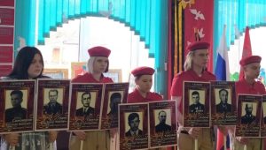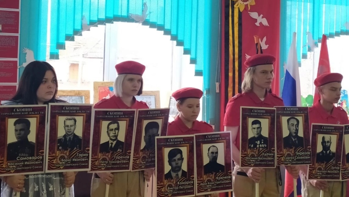 Памятные мероприятия продолжились в селе Горлово. В фойе местного Дома культуры открыли выставку, посвященную памяти нашего знаменитого земляка Федора Полетаева и защитникам Отечества. Экспозиция включала фотографии, документы и материалы о его боевом пути и подвигах скопинцев в годы Великой Отечественной войны. Ученики Горловской школы встали с портретами фронтовиком в шеренгу «Бессмертного полка».