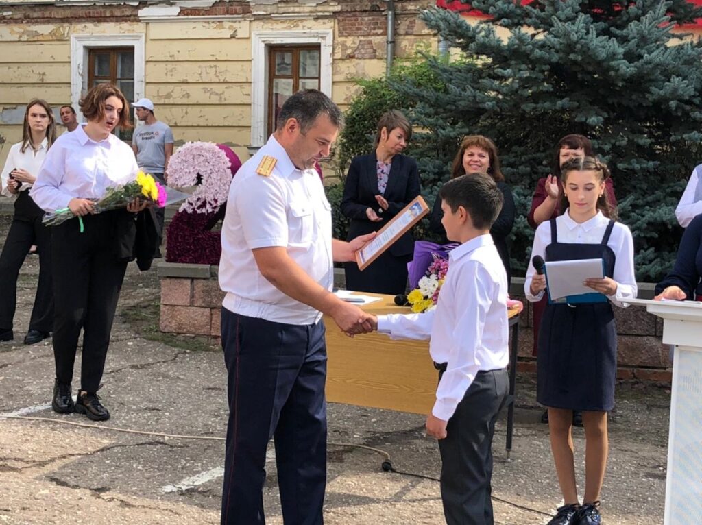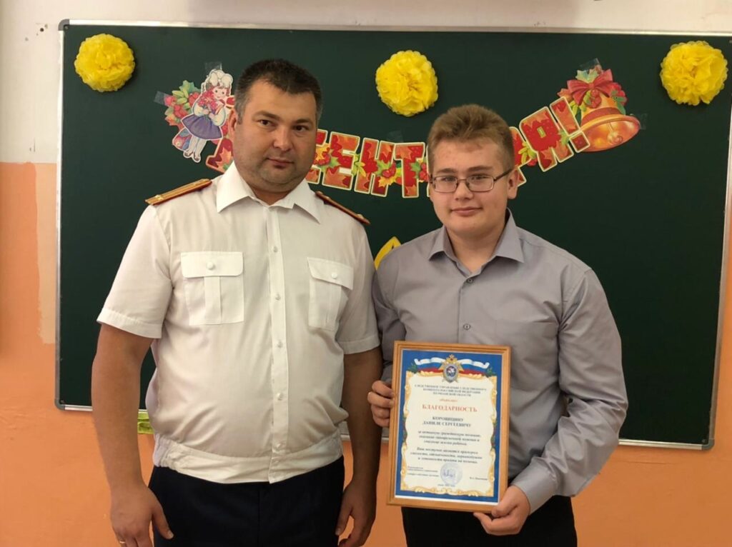 На торжественной линейке 1 сентября начальник Скопинского межрайонного следственного отдела СУ СК РФ Александр Рязанкин вручил благодарности своего ведомства за подписью руководителя следственного управления СК РФ по Рязанской области Владимира Никешкина шестикласснику Даниле Чепрову из первой средней школы и ученику 7 класса СОШ № 4 Даниле Коровицину.