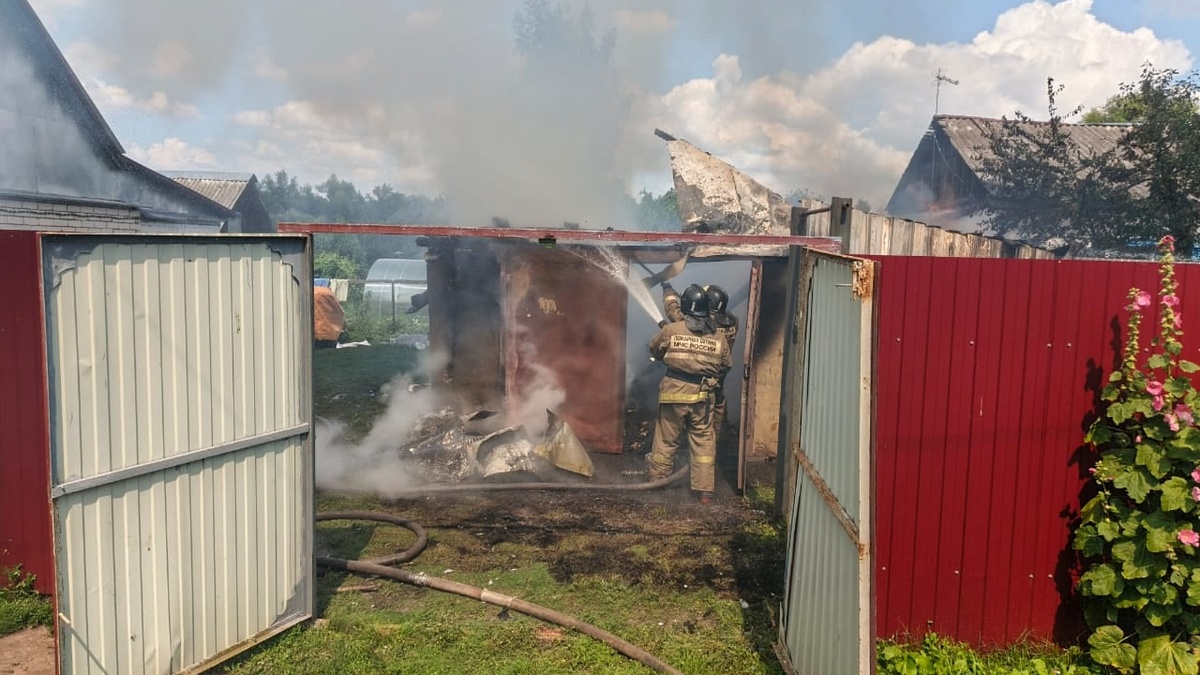 28 июля в 11.23 на пульт диспетчера ПСЧ-39 поступило сообщение, что в селе Князево Скопинского района горит кирпичный гараж.