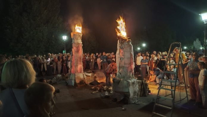 Завершающим аккордом фестиваля стало «Огненное шоу» от семьи скопинских гончаров Якушкиных-Киселевых. На протяжении нескольких часов на площади Ленина шел обжиг огромных глиняных фигур.